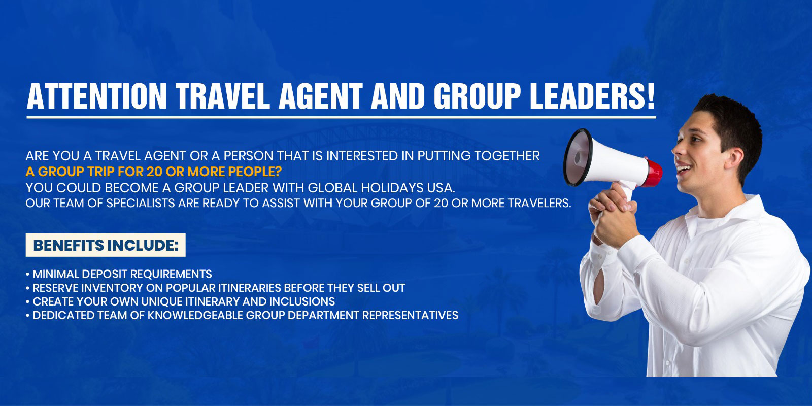 As an USA tour operator with a deep understanding of what travelers value most, we ensure every trip is smooth, safe, and enriching. There are no hidden costs or last-minute surprises – just transparent planning and memorable moments. With IATA-bonded and IATAN accreditation and a long-standing reputation for reliability, Global Holidays USA has earned the trust of thousands of repeat travelers.